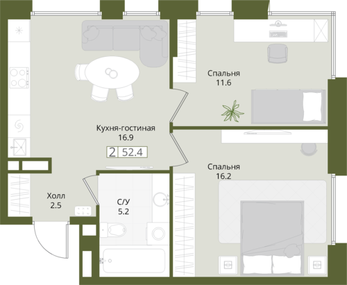 52,4 м²