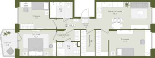 3-комнатная