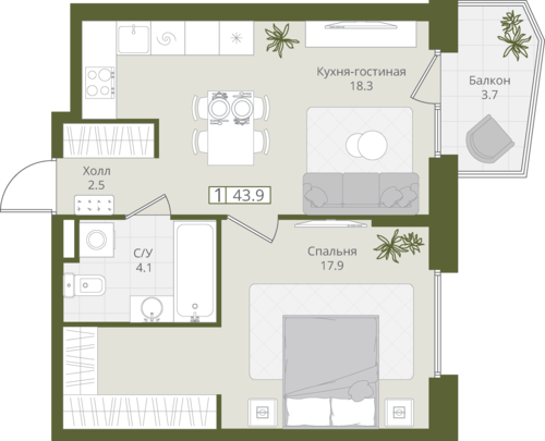 43,9 м²
