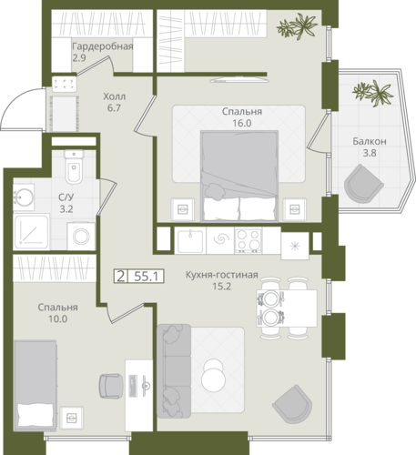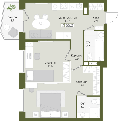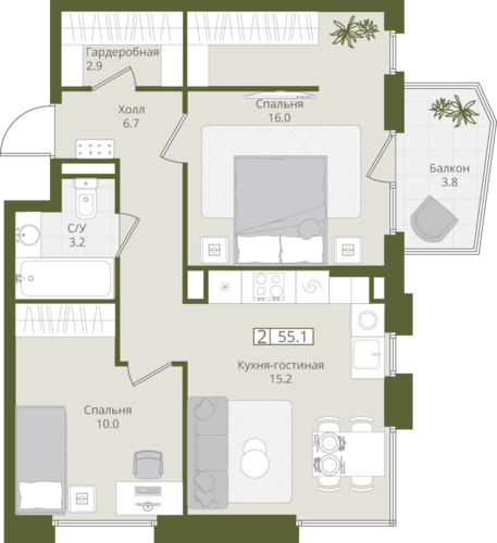 55,2 м²