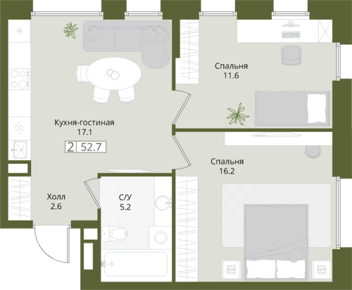 52,7 м²