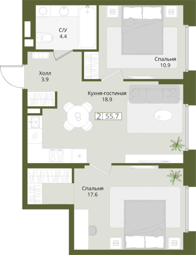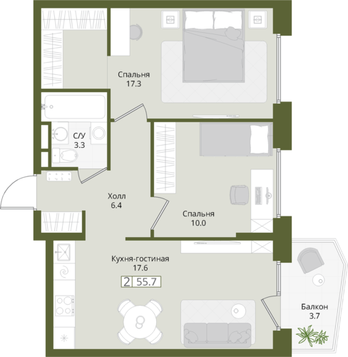 55,7 м²