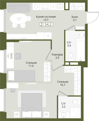 54,2 м²