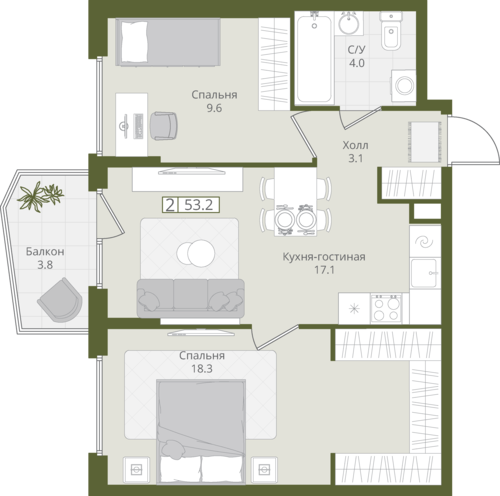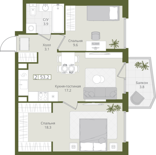 53,2 м²