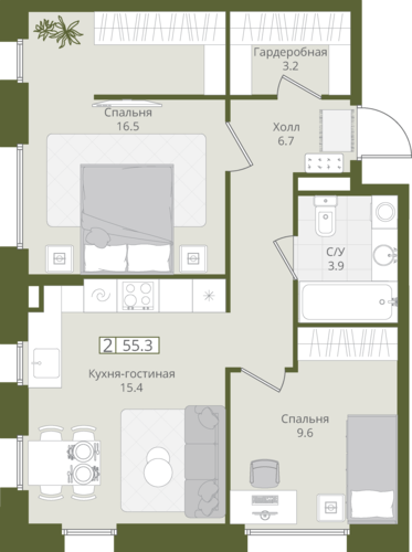 55,3 м²