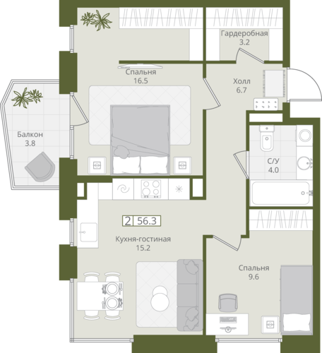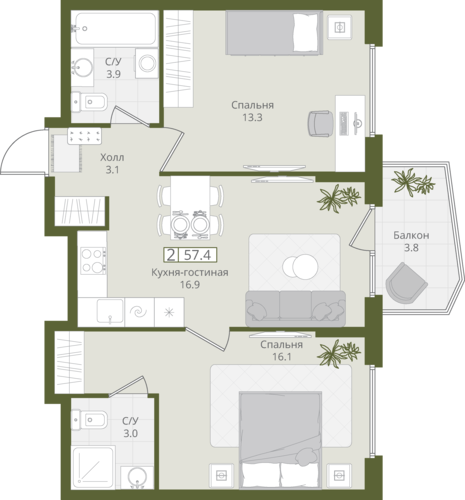 Представленные планировочные решения носят иллюстративный характер. Застройщик передаёт объект с планировкой, указанной в договоре участия в долевом строительстве. Любая перепланировка должна соответствовать требованиям государственных органов.
