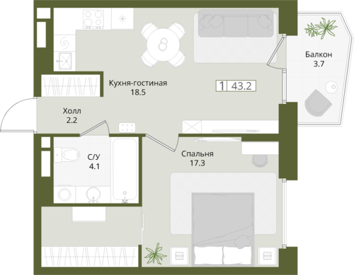 Представленные планировочные решения носят иллюстративный характер. Застройщик передаёт объект с планировкой, указанной в договоре участия в долевом строительстве. Любая перепланировка должна соответствовать требованиям государственных органов.